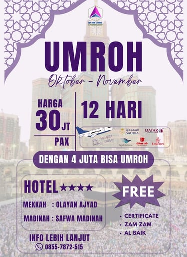 Kami menyediakan berbagai Paket Umroh, Paket Umroh Plus, Paket Wisata Domestik & Internasional menarik.